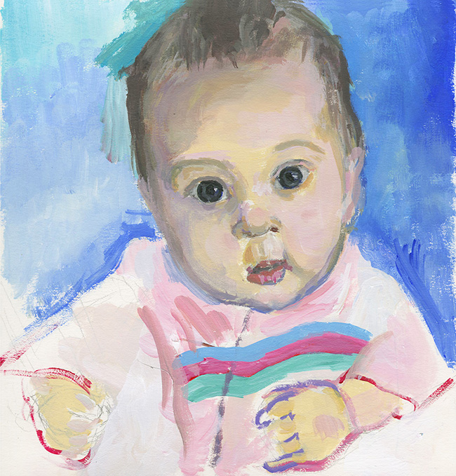 ![]() 16x20", oil on panel.... "Scrabble Game" | ![]() 8x8"", Acrylic on Paper.... "Athena at 2 Months" | <>30x30", "Anne and Paul" |